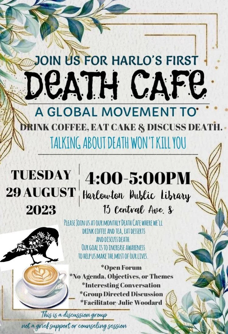 Join us for Harlo’s first Death Cafe—a global movement to drink coffee, eat cake, & discuss death.