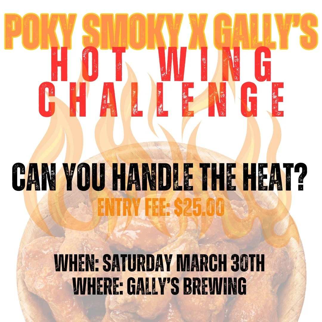 Poky Smoky & Gally's are teaming up to have a HOT WING CHALLENGE on Saturday, March 30th!